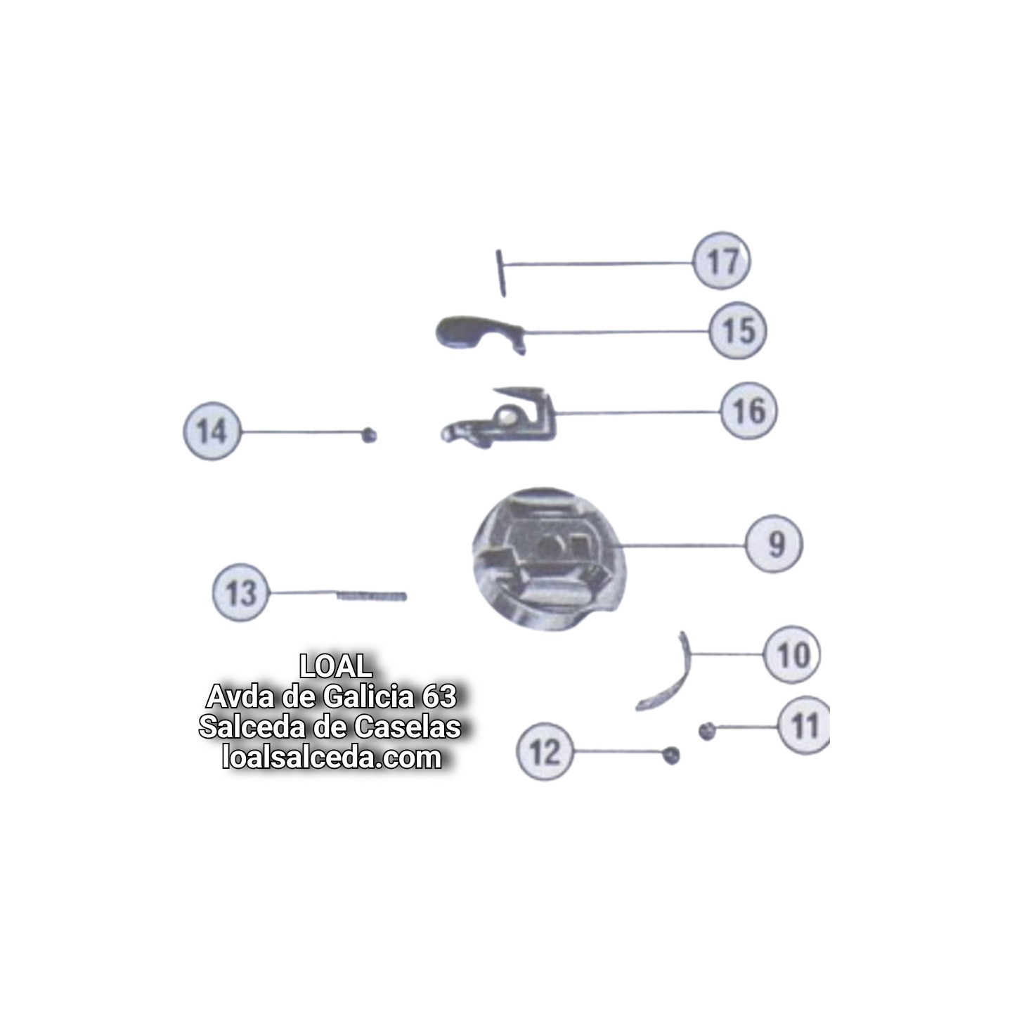 Tornillo de sujeccion de pestillo de la caja de bobina de la maquina de coser Refrey 427, Refrey Transfforma, refrey 430. El tornillo tiene la referencia B815E en el despiece de la Refrey 427 .