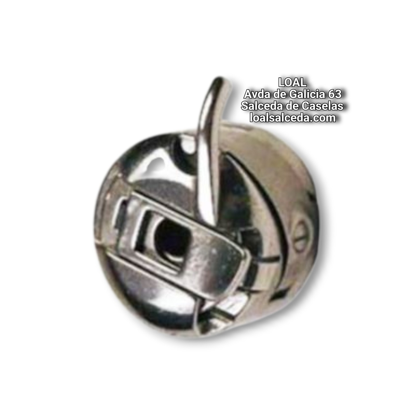 Esta caja de bobina es muy parecida a la que llevan las máquinas de coser domesticas de garfio oscilante pero en vez de llevar el palito que sale hacia arriba hacia el lado derecho , lo tiene girado hacia el lado izquierdo. Fijarse bien en la foto para darse cuenta que es la que llevan este tipo de máquinas de coser.