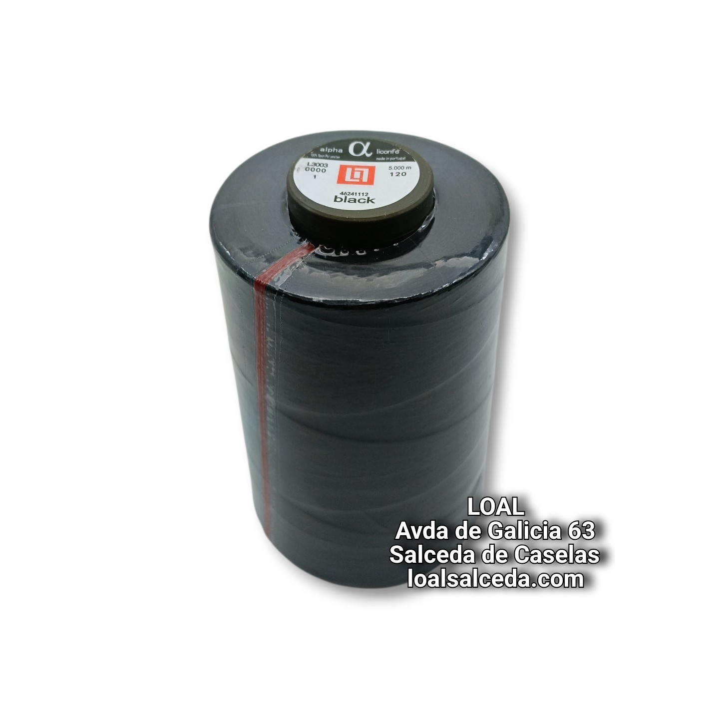 Cono de hilo negro de poliester de longitud 5000 mts , 140 g