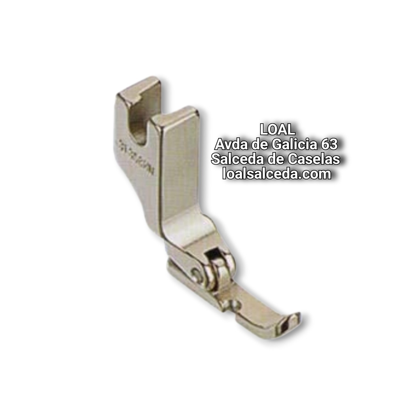 Prensatelas para coser cremalleras en maquinas de coser industriales de pespunte recto. En este prensatelas la aguja queda en el lado izquierdo del prensatelas.